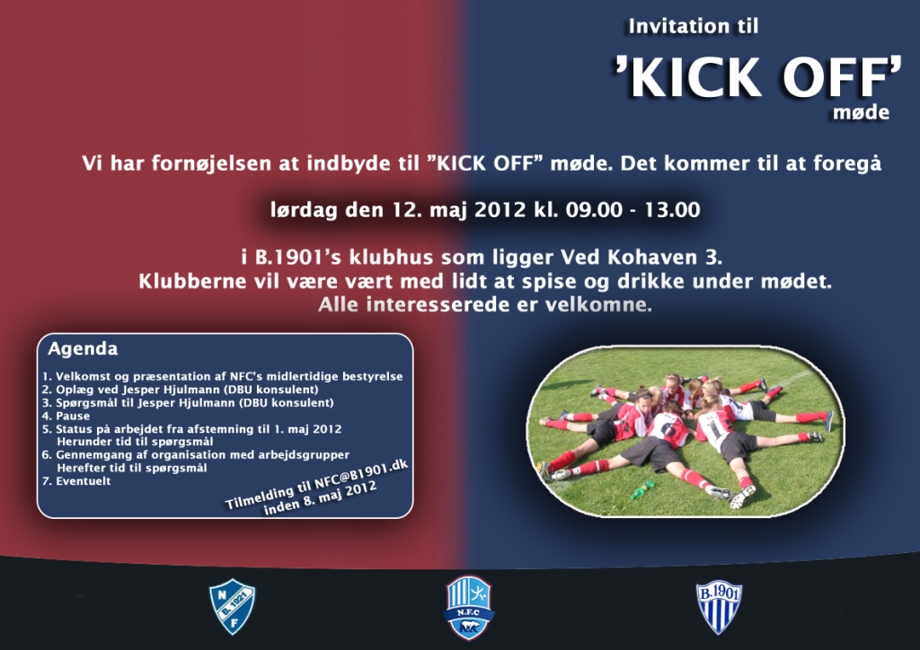 | 22.03.13 | Invitation til Kick-off møde den 13. april 2013 kl. 09.00. Alle trænere/ledere og interesserede er velkomne. Tilmelding nødvendigt - klik her for at tilmelde |