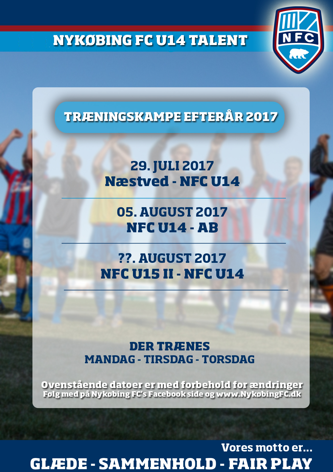 I næste uge er det således Nykøbing FC's U14 talenthold som vender tilbage på træningsbanen efter sommerferien.