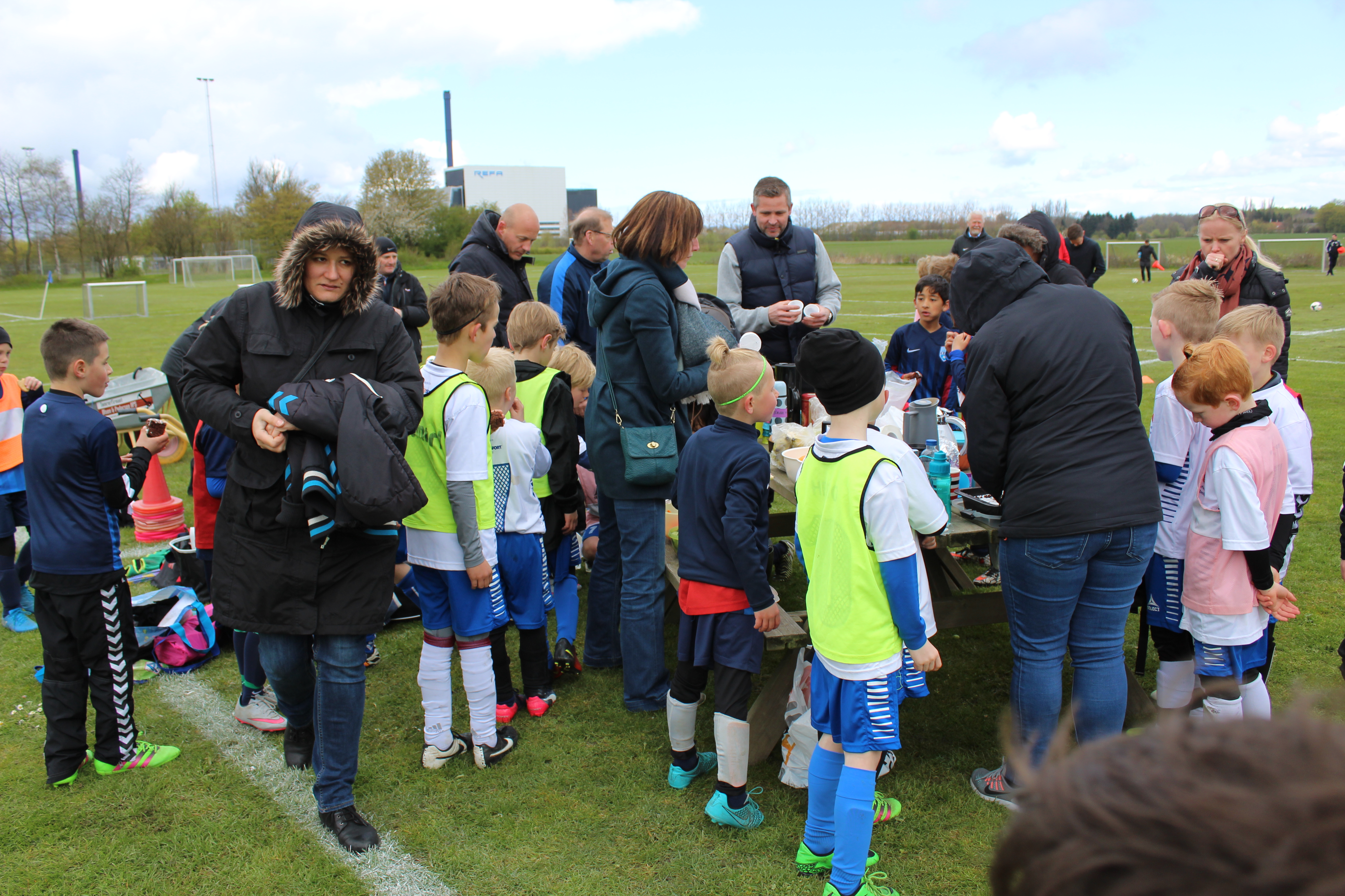 Forældre havde sørget for grønt/frugt og kage til drengene og kaffe til de til tider frysende forældre😊